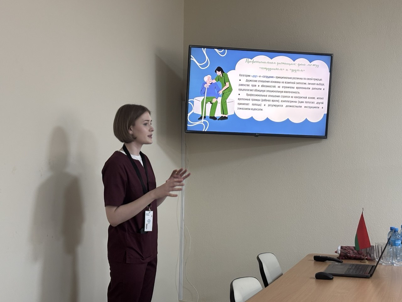 Особенностью этого мероприятия стало новое направление работы проекта – взаимодействие с социальными работниками, осуществляющими уход за гражданами пожилого возраста в агрогородке Сапоцкино. Расширение географии и аудитории проекта позволило охватить специалистов, работающих в отдаленном населенном пункте, что особенно важно для обеспечения равного доступа к просветительским ресурсам и повышения качества социальной помощи на местах.