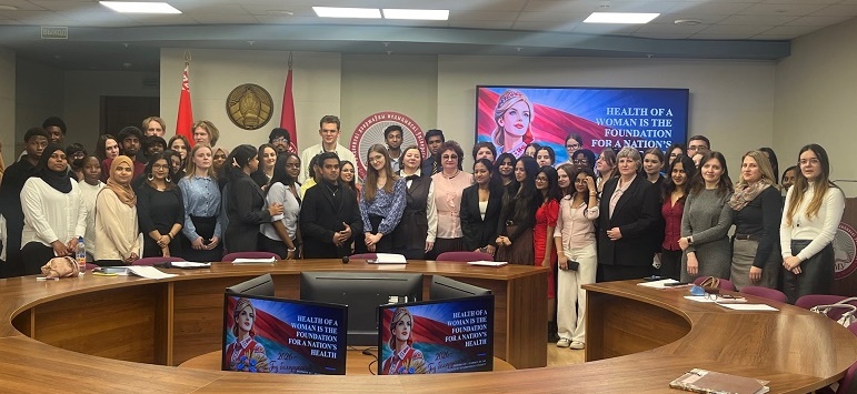 24 мая 2026 года в рамках «Недели английского языка» на кафедре иностранных языков при участии студентов, изучающих английский язык, а также иностранных студентов Гродненского государственного медицинского университета, их кураторов и заместителей декана факультета иностранных учащихся состоялся круглый стол «Women's health is the key to a nation's health and well-being» (Здоровье женщины — залог здоровья и благополучия нации).