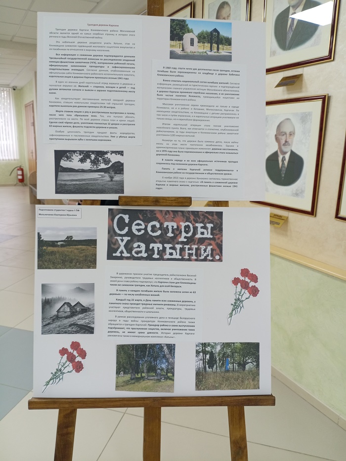 20.03.2026 г. заведующий кафедрой иностранных языков Разводовская Я.В. и старшие преподаватели Семенчук И.В., Головач Т.Н., Нечай М.А., Василевич М.Н., Мысливец Т.А., Шидловская О.В. посетили тематическую выставку, посвященную памяти белорусских деревень, уничтоженных в годы Великой Отечественной войны.