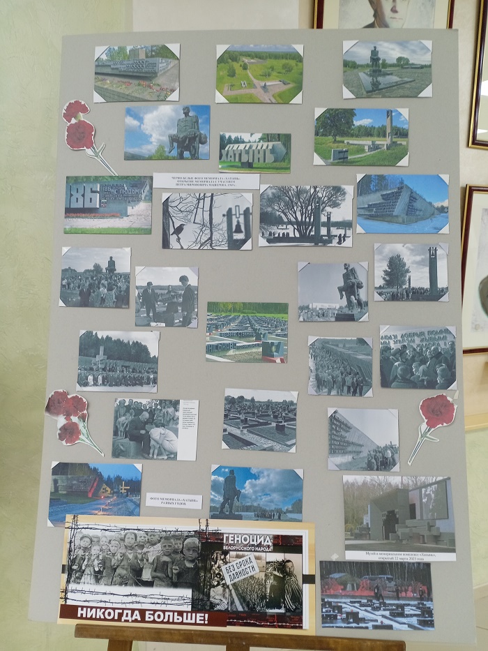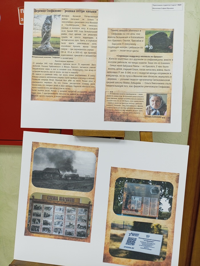 На выставке были представлены фотоматериалы и исторические справки о деревнях Гродненщины, вошедших в скорбный список «Сестер Хатыни» – населенных пунктов, разделивших трагическую участь знаменитой белорусской деревни Хатыни. Среди экспонатов – архивные фотографии, свидетельства очевидцев и материалы местных краеведческих исследований, рассказывающие о судьбе десятков сел и хуторов региона, стертых с лица земли нацистскими карательными отрядами.