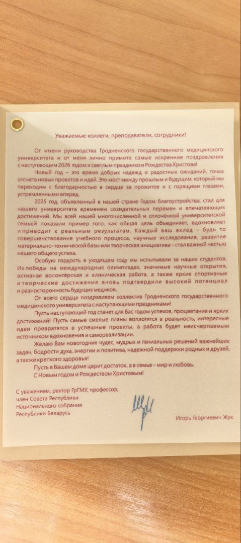 Поздравление от руководства ГрГМУ с наступающими праздниками