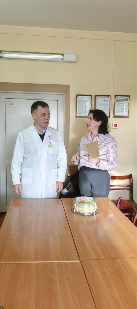 Ирина Андреевна вручила коллективу кафедры сладкий подарок, поздравительную открытку от руководства вуза и поблагодарила за добросовестный труд.