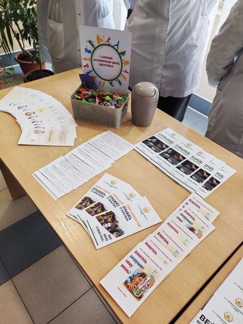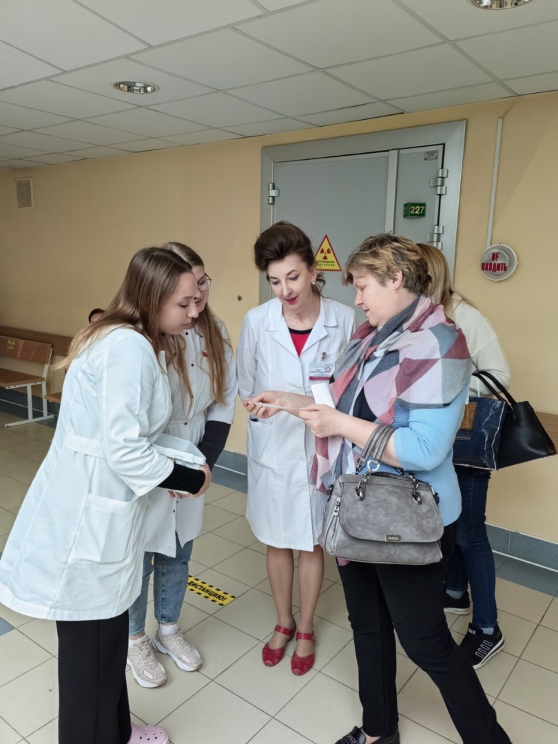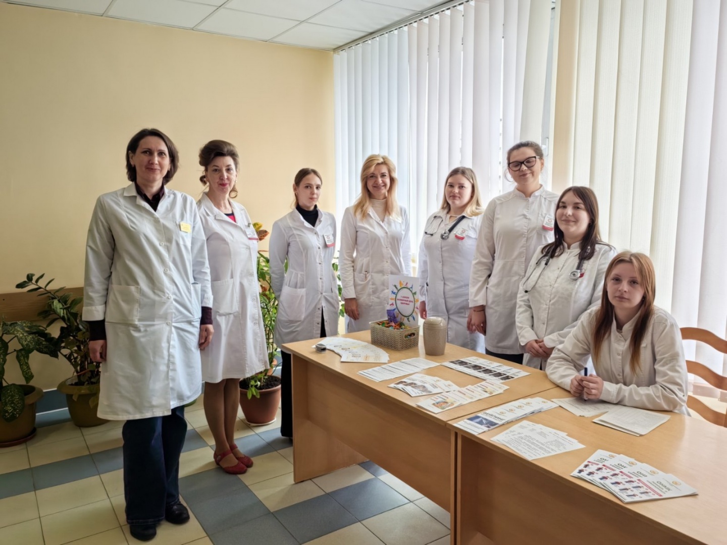 6 и 7 апреля на базе городской поликлиники №7 г. Гродно студентами 5 группы 6 курса ЛФ под руководством доцента Кежун Л.В. была проведена акция, посвященная Всемирному Дню Здоровья. Тема акции: "Онкологические заболевания: факторы, симптомы, профилактика". Субординаторы путем анкетирования, опроса и осмотра выявляли факторы риска онкологических заболеваний, давали рекомендации по их профилактике.