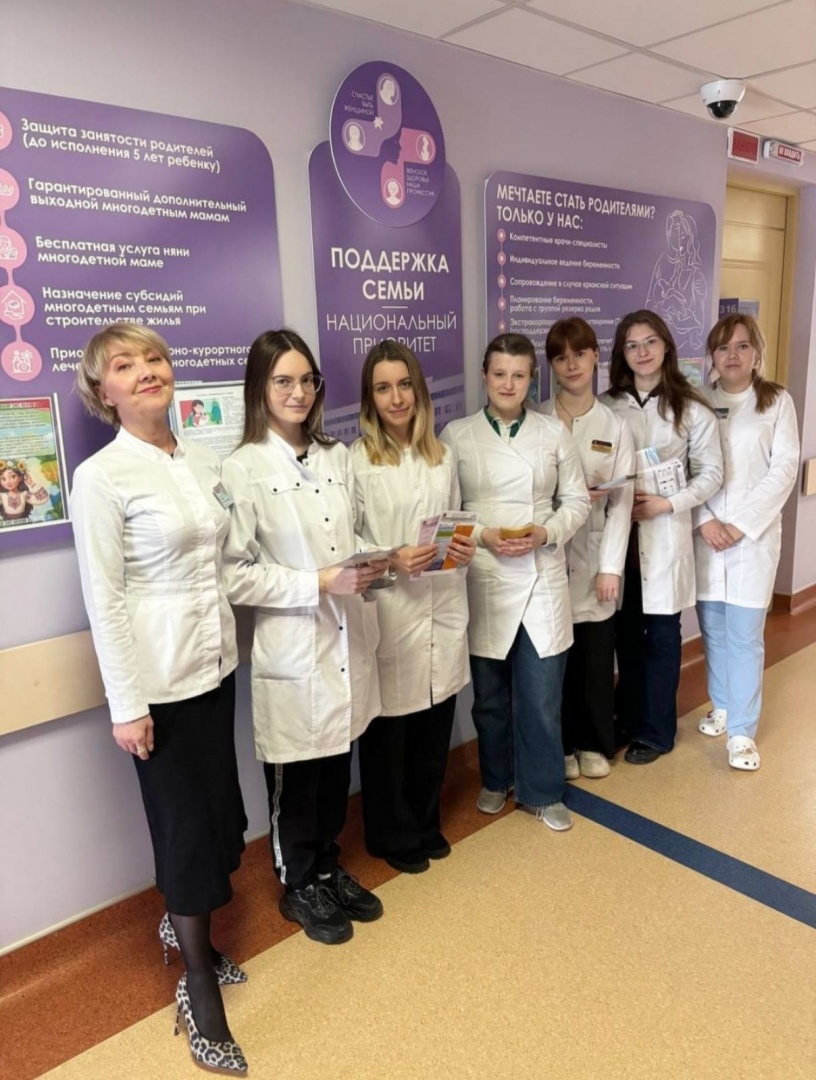 19 марта на базе городской поликлиники №7 г.Гродно в рамках мероприятий, посвященных Году белорусской женщины прошла акция «Будущая мама», организованная старшим преподавателем кафедры ОВП и поликлинической терапии Смирновой Л.Н. совместно с заведующей женской консультацией поликлиники Пышинской А. С. Участницами стали желающие студентки 4 курса 24 группы ЛФ.