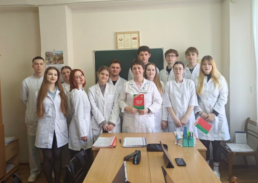 Преподаватель кафедры пропедевтики внутренних болезней Ославская М.Ч. со студентами 3 курса ЛФ присутствовали на премьере. Узнали историю возникновения, становления и развития главных символов белорусской государственности: Государственного герба и флага.
