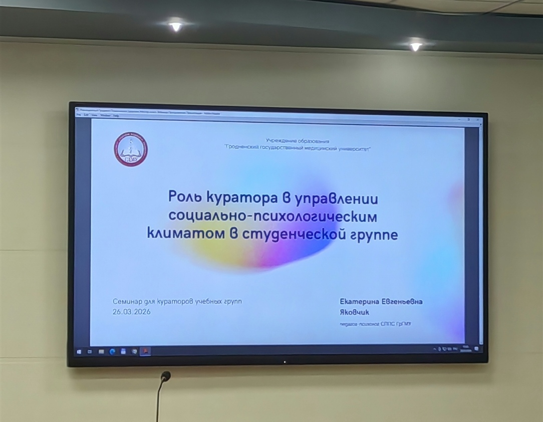 26.03.26 г. состоялся также практический семинар для кураторов «Роль куратора в управлении социально-психологическим климатом в студенческой группе». Преподаватели кафедры пропедевтики внутренних болезней – кураторы учебных групп, присутствовали на семинаре. В ходе мероприятия были рассмотрены вопросы: почему важен психологический климат в учебной группе, как его правильно сформировать, как можно использовать в работе результаты социометрического исследования и другие.