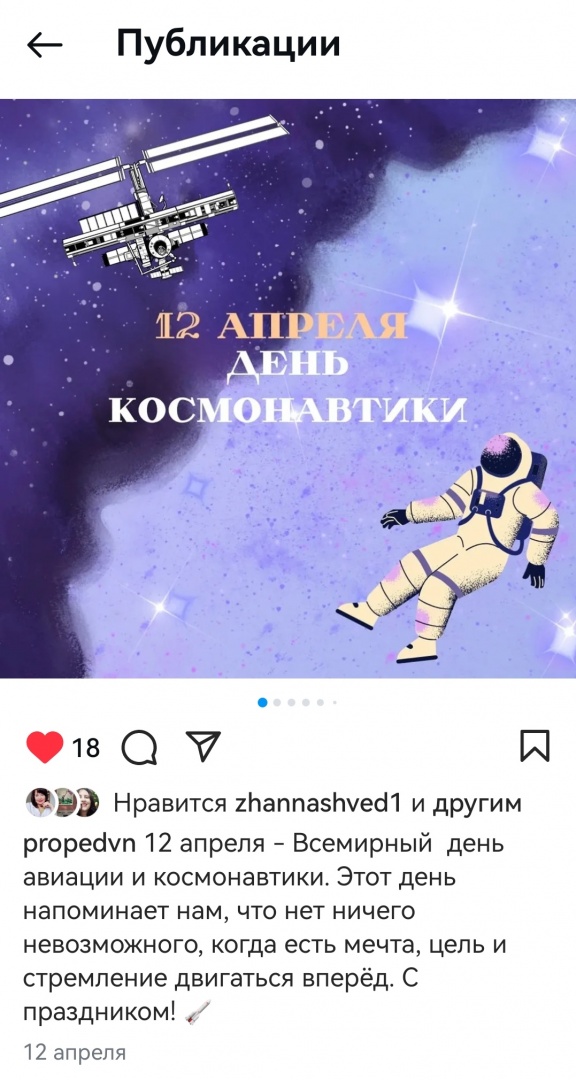 12 апреля – Всемирный день авиации и космонавтики. Этот день напоминает нам, что нет ничего невозможного, когда есть мечта, цель, и стремление двигаться вперёд.