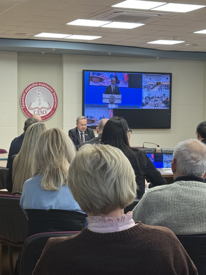 13.01.2026 года ассистент кафедры психиатрии и наркологии  Юречко Е.В. приняла участие в диалоговой площадке с заместителем Министра здравоохранения Андросюком Б.Н. об итогах второго заседания 7 Всебелорусского народного собрания, которая состоялась в режиме онлайн-трансляции. С обращением к участникам площадки выступил заместитель Министра здравоохранения Андросюк Б.Н.