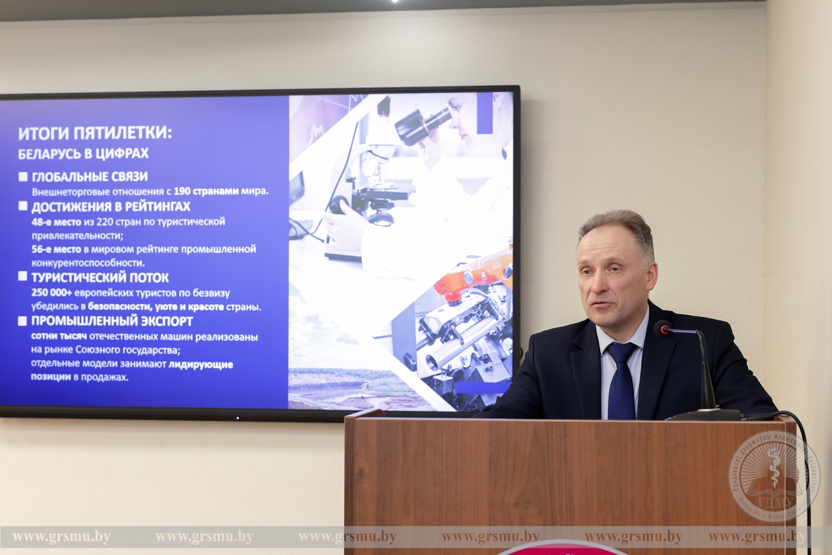 С презентацией «Ключевые аспекты Послания Президента Республики Беларусь Александра Григорьевича Лукашенко белорусскому народу и Национальному собранию Республики Беларусь» выступил доцент кафедры социально‑гуманитарных наук ГрГМУ Станислав Алёйзович Сильванович.