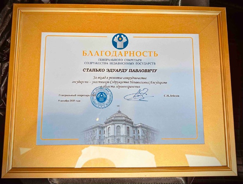 Благодарность Генерального секретаря СНГ объявлена члену рабочей группы Общественного совета, заведующему кафедрой психиатрии и наркологии Гродненского государственного медицинского университета, д.м.н. Эдуарду Станько.