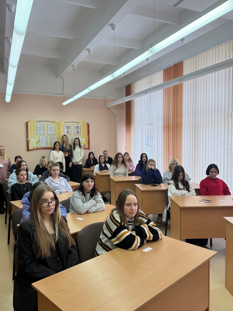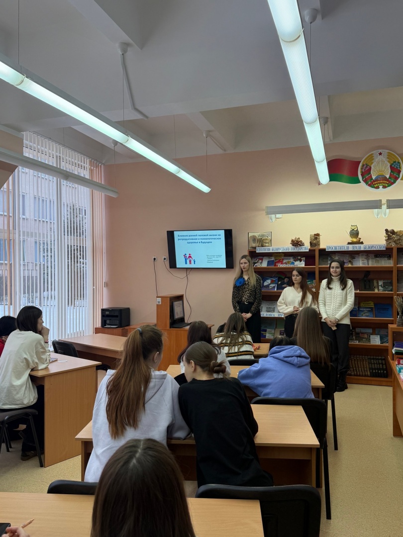 Члены Молодежного совета при Гродненском городском Совете депутатов, студентки ГрГМУ – Екатерина Гуменюк и Мария Бах – совместно с Белорусским союзом женщин и врачом‑акушером‑гинекологом филиала №1 ДЦГКП г. Гродно Екатериной Юрьевной Левиной провели важную и доверительную лекцию для студенток колледжа отраслевых технологий.