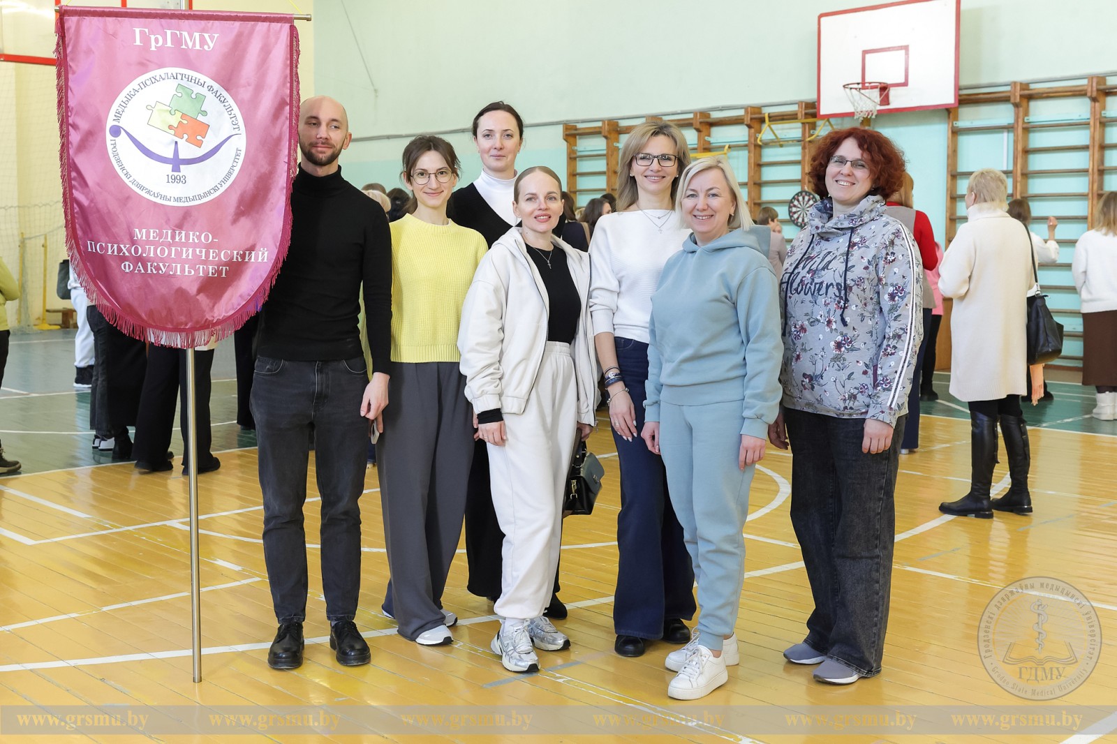 В Гродненском государственном медицинском университете проходит ежегодная Спартакиада «Здоровье – 2026». Свою самую многочисленную за последние годы команду выставляет коллектив кафедр Медико-психологического факультета (МПФ) под ярким названием «ДОФАМИН 2.0» и с мотивирующим девизом: «Включи свою победу!».